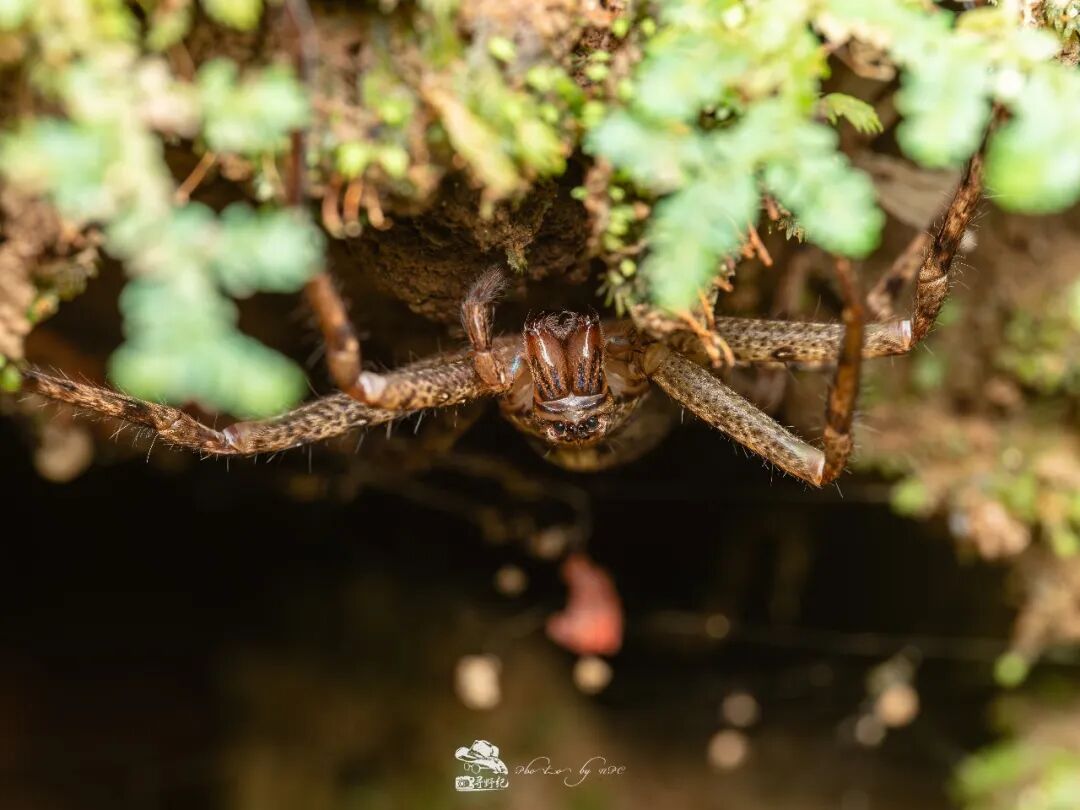 躲藏于山壁苔藓下的蜘蛛,每一根纤毛都清晰可见。