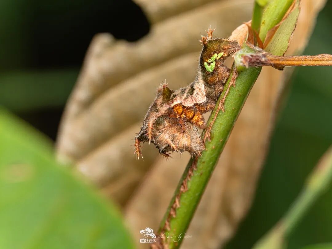 拟态成枯叶的相当酷炫的中环蛱蝶幼虫。中环蛱蝶随处可见,但它的幼虫并不好找。